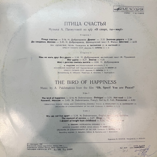Виниловая пластинка А. Пахмутова – Птица Счастья (Мелодия) LP