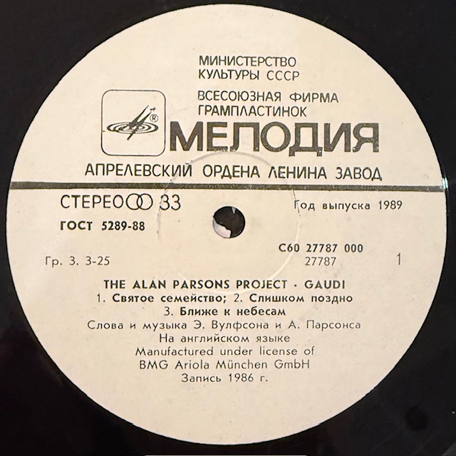Виниловая пластинка Алан Парсон Проджект - Гауди (Мелодия) LP