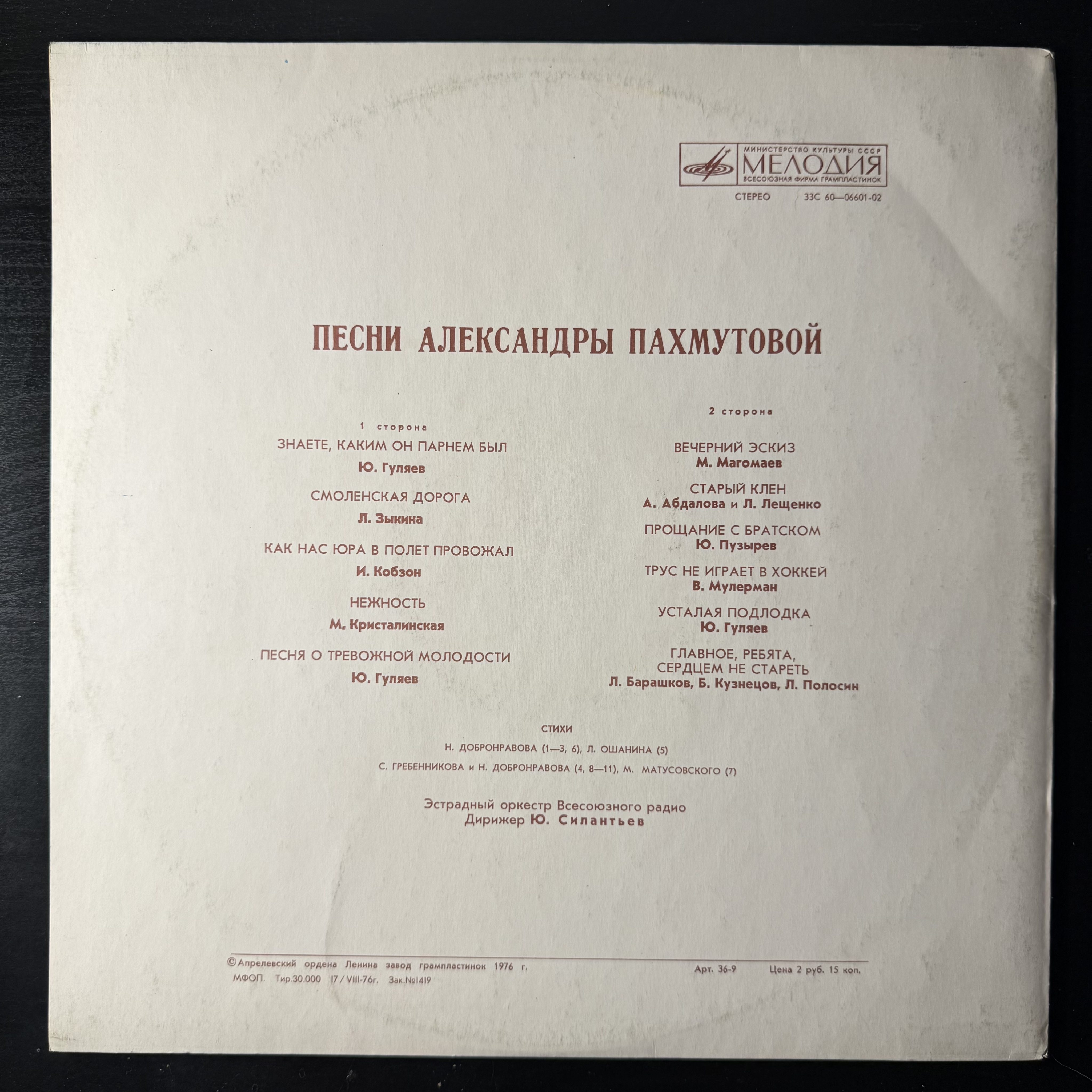 Виниловая пластинка Александра Пахмутова ‎– Песни (Мелодия) LP