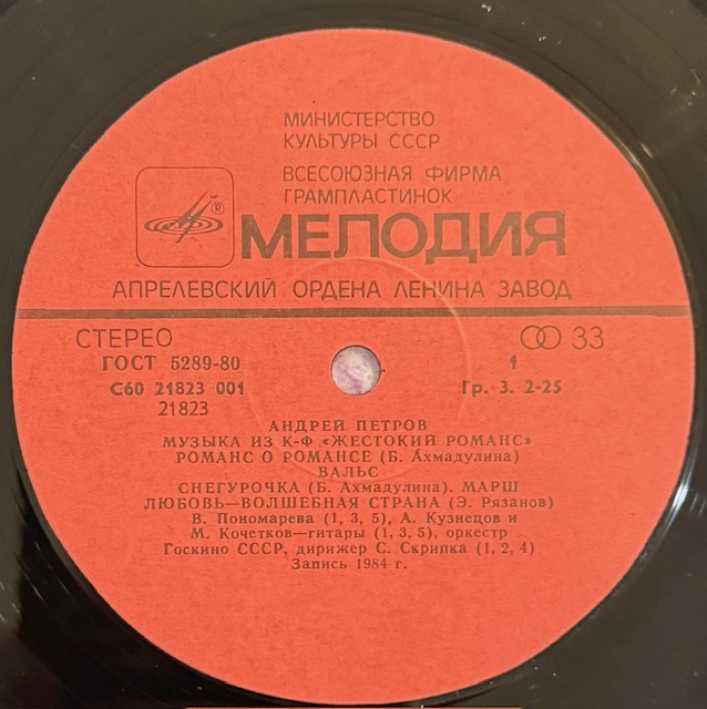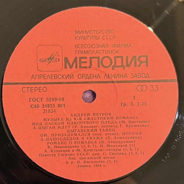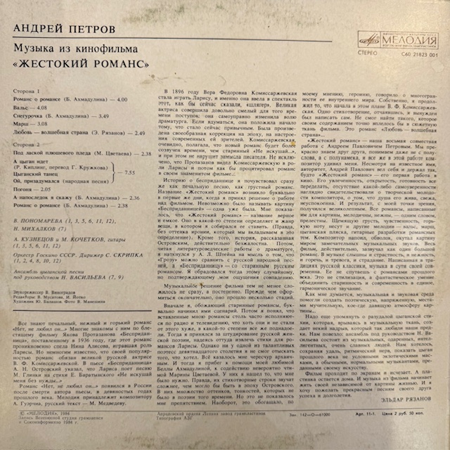 Виниловая пластинка Андрей Петров – Музыка из к/ф «Жестокий романс» (Мелодия) LP