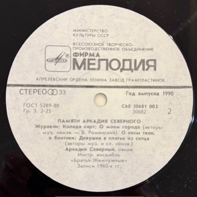 Виниловая пластинка Аркадий Северный — Памяти Аркадия Северного (Мелодия) LP