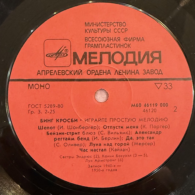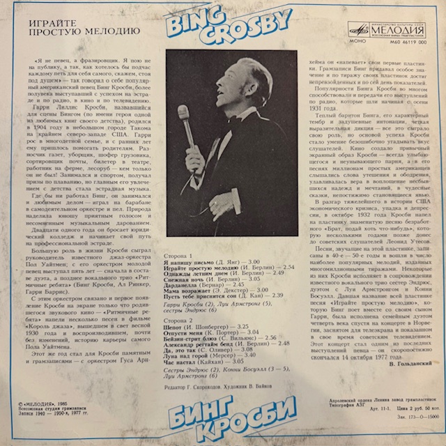 Виниловая пластинка Бинг Кросби – Играйте Простую Мелодию (Мелодия) LP