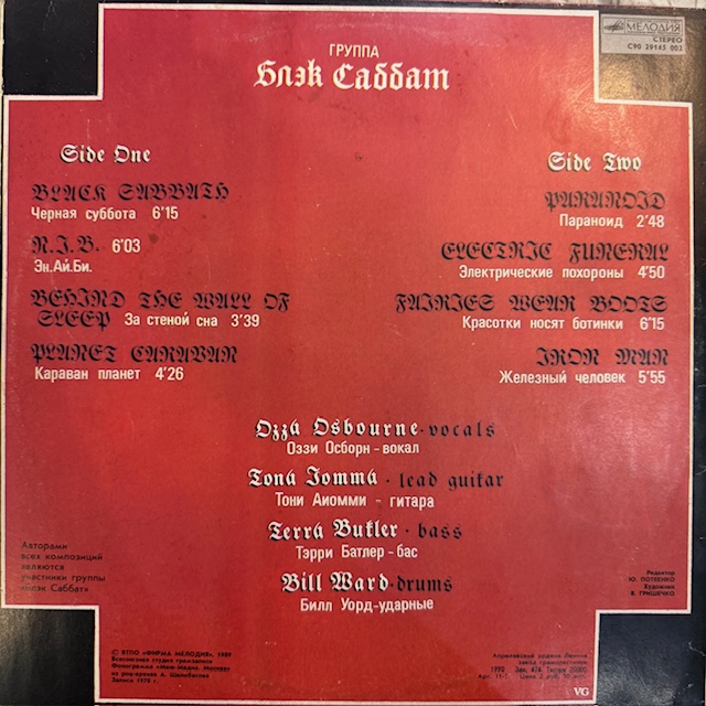 Виниловая пластинка Блэк Саббат – Black Sabbath (Мелодия) LP