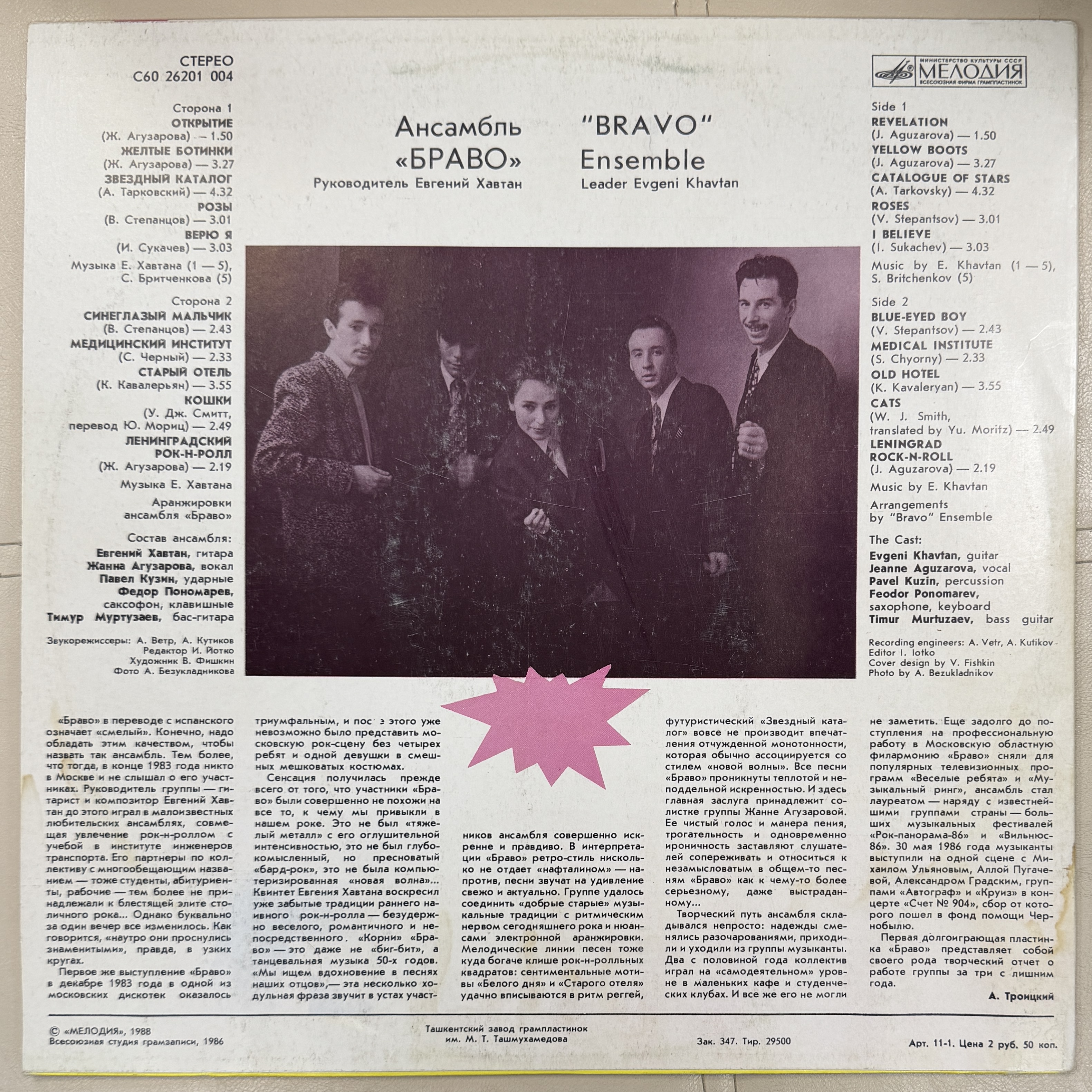 Редкое коллекционное издание альбома группы «Браво»! Вы станете обладателем настоящего артефакта русского рока из Советского Союза 1987 года выпускания. Статус состояния NM гарантирует отличное качество звучания, а аккуратный конверт EX позволит сохранить его первозданность. Заполните свою коллекцию уникальным образцом музыкальной истории России!