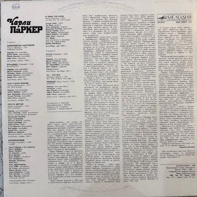 Виниловая пластинка Чарли Паркер — Чарли Паркер (Мелодия) LP