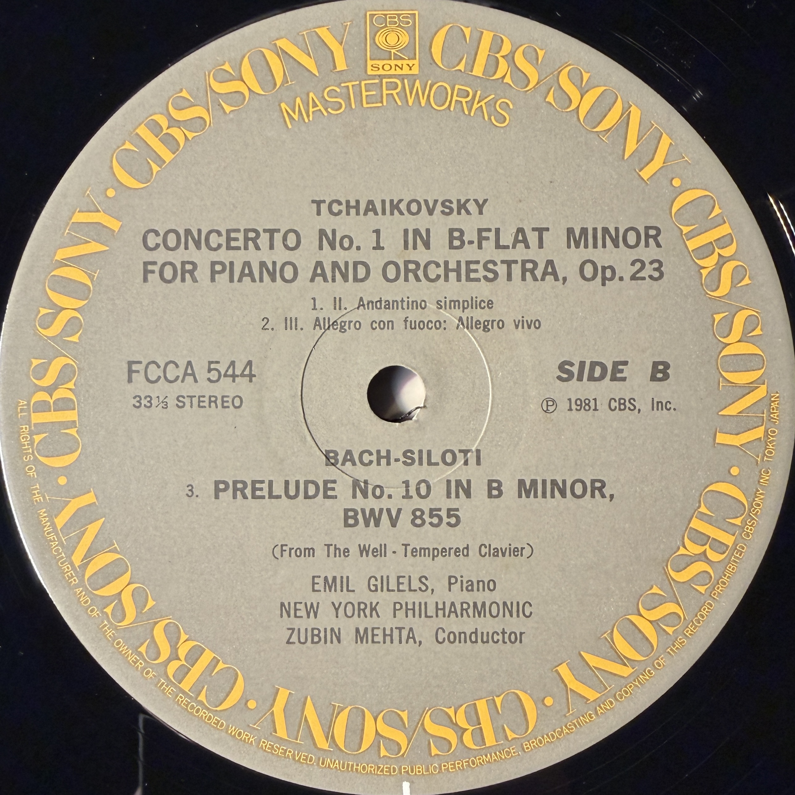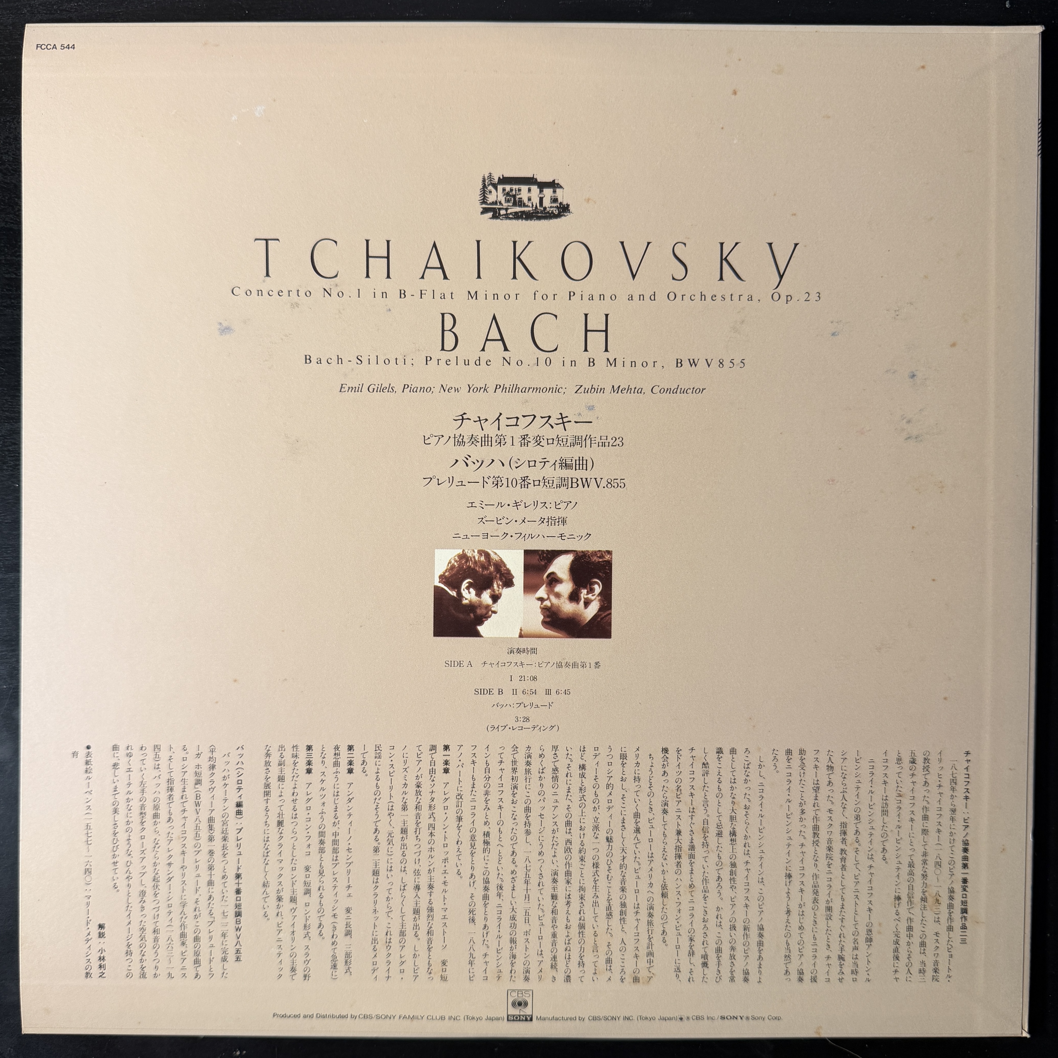 Виниловая пластинка Чайковский - Концерт № 1 для фортепиано с оркестром / Бах - Прелюдия № 10 LP