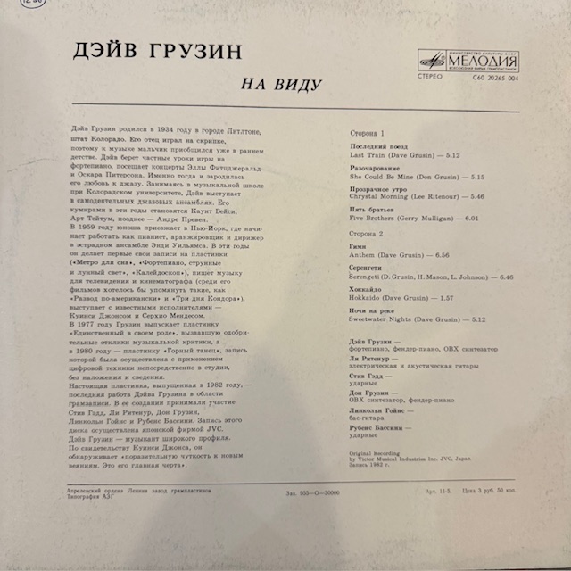 Виниловая пластинка Дэйв Грузин - На виду (Мелодия) LP