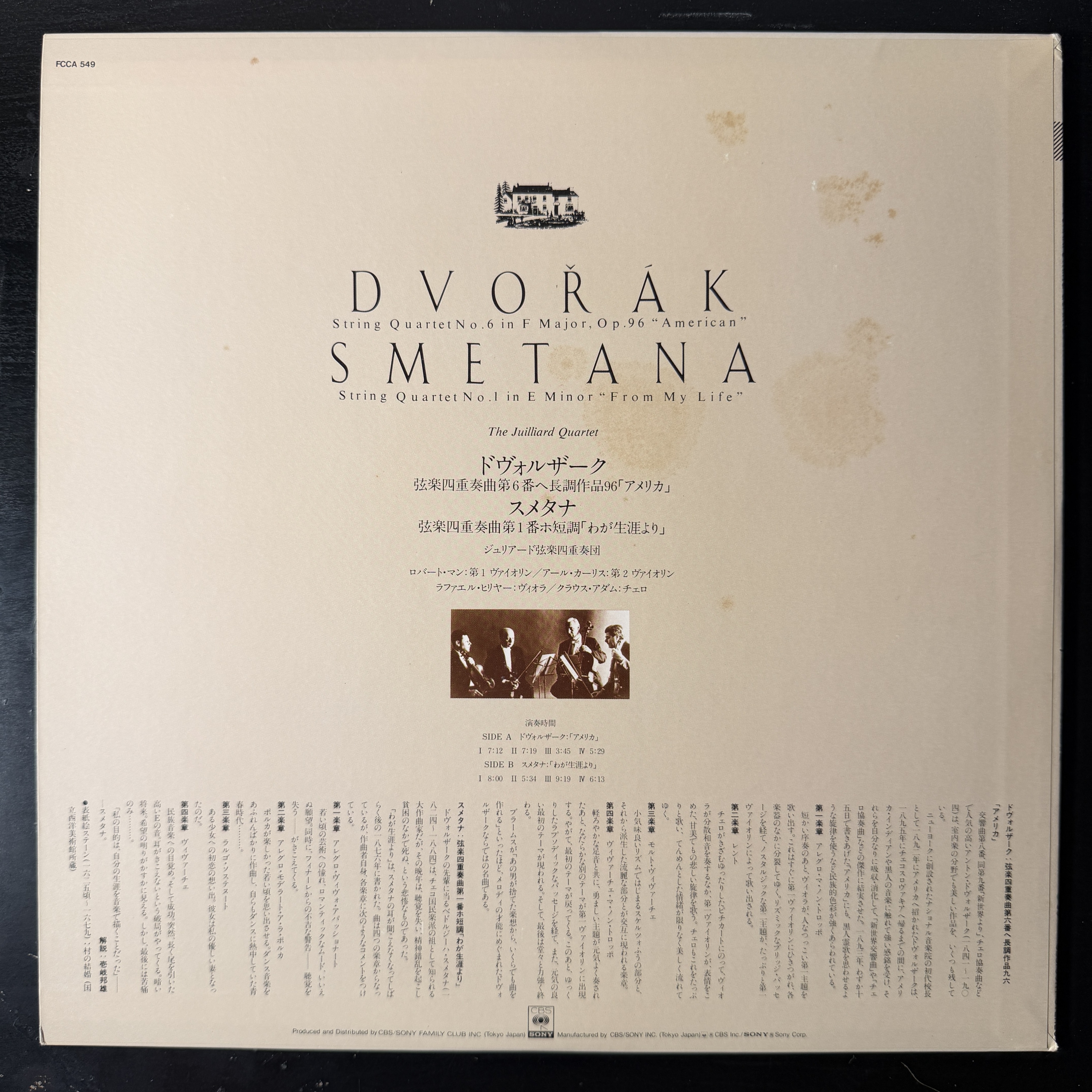 Виниловая пластинка Дворжак - Американский квартет / Сметана - Квартет Из моей жизни LP