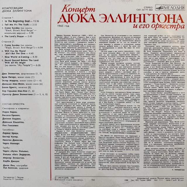 Виниловая пластинка Дюк Эллингтон и его оркестр — Концерт Дюка Эллингтона и его оркестра (Мелодия) LP