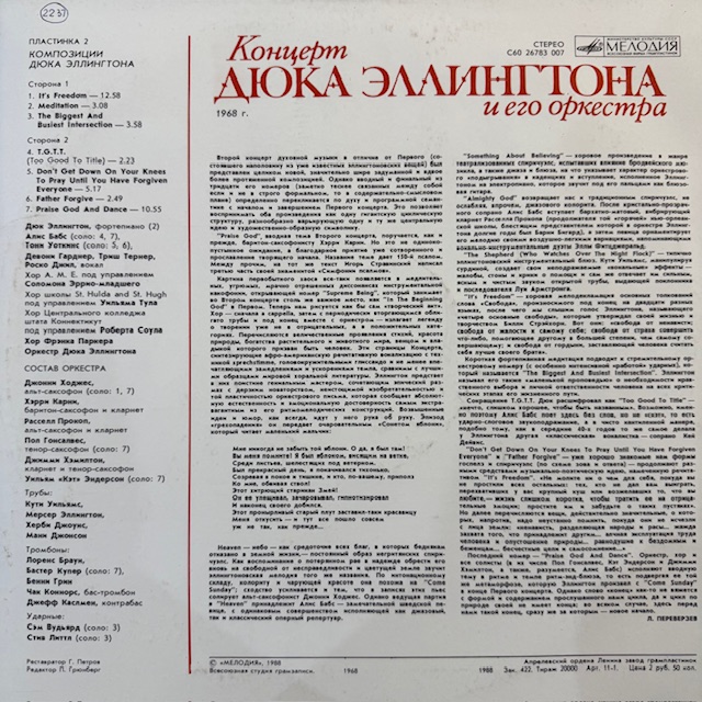 Виниловая пластинка Дюк Эллингтон и его оркестр — Концерт Дюка Эллингтона и его оркестра (пластинка 1) (Мелодия) LP