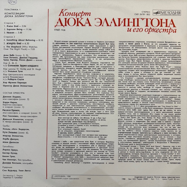 Виниловая пластинка Дюк Эллингтон и его оркестр — Концерт Дюка Эллингтона и его оркестра (пластинка 2) (Мелодия) LP