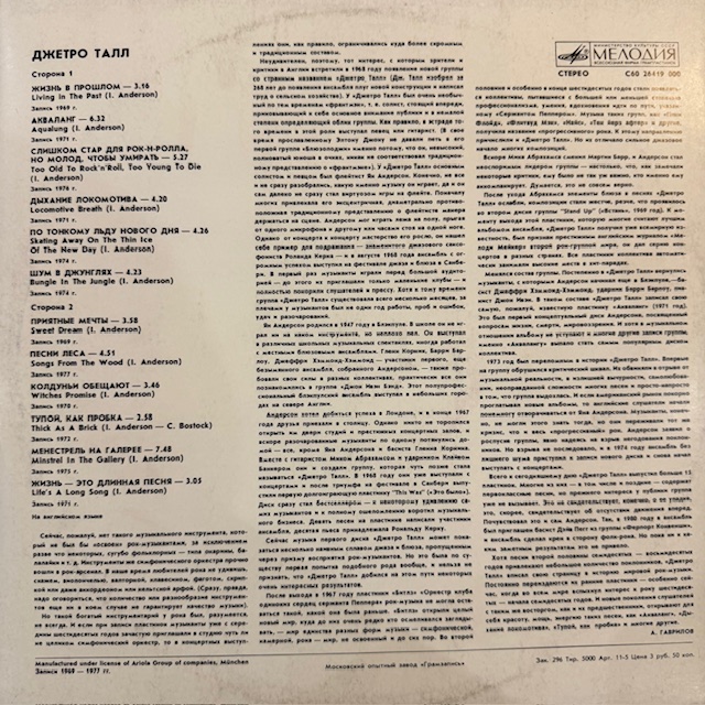 Виниловая пластинка Джетро Талл — Джетро Талл (Мелодия) LP