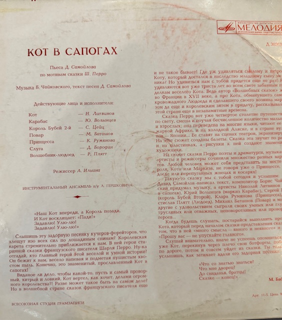 Виниловая пластинка Ш. Перро – Кот в сапогах (Мелодия) 10"