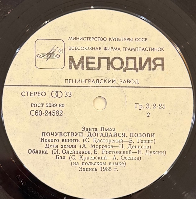 Виниловая пластинка Эдита Пьеха – Почувствуй, догадайся, позови… (Мелодия) LP