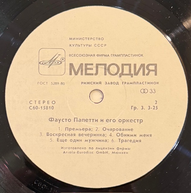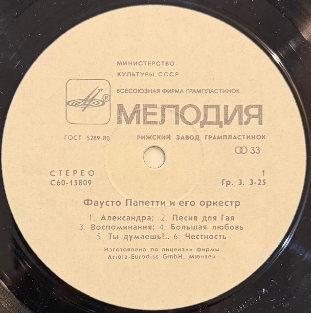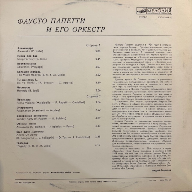 Виниловая пластинка Фаусто Папетти – Фаусто Папетти и его оркестр (Мелодия) LP