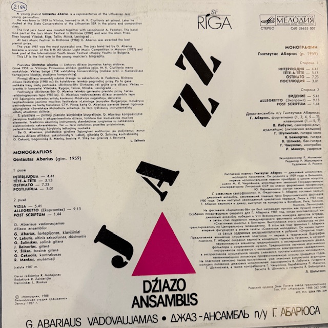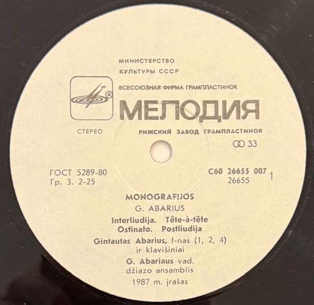 Виниловая пластинка Гинтас Абариус – Монографии (Мелодия) LP