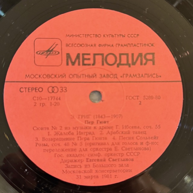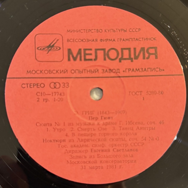 Виниловая пластинка Григ — Пер Гюнт (Мелодия) LP