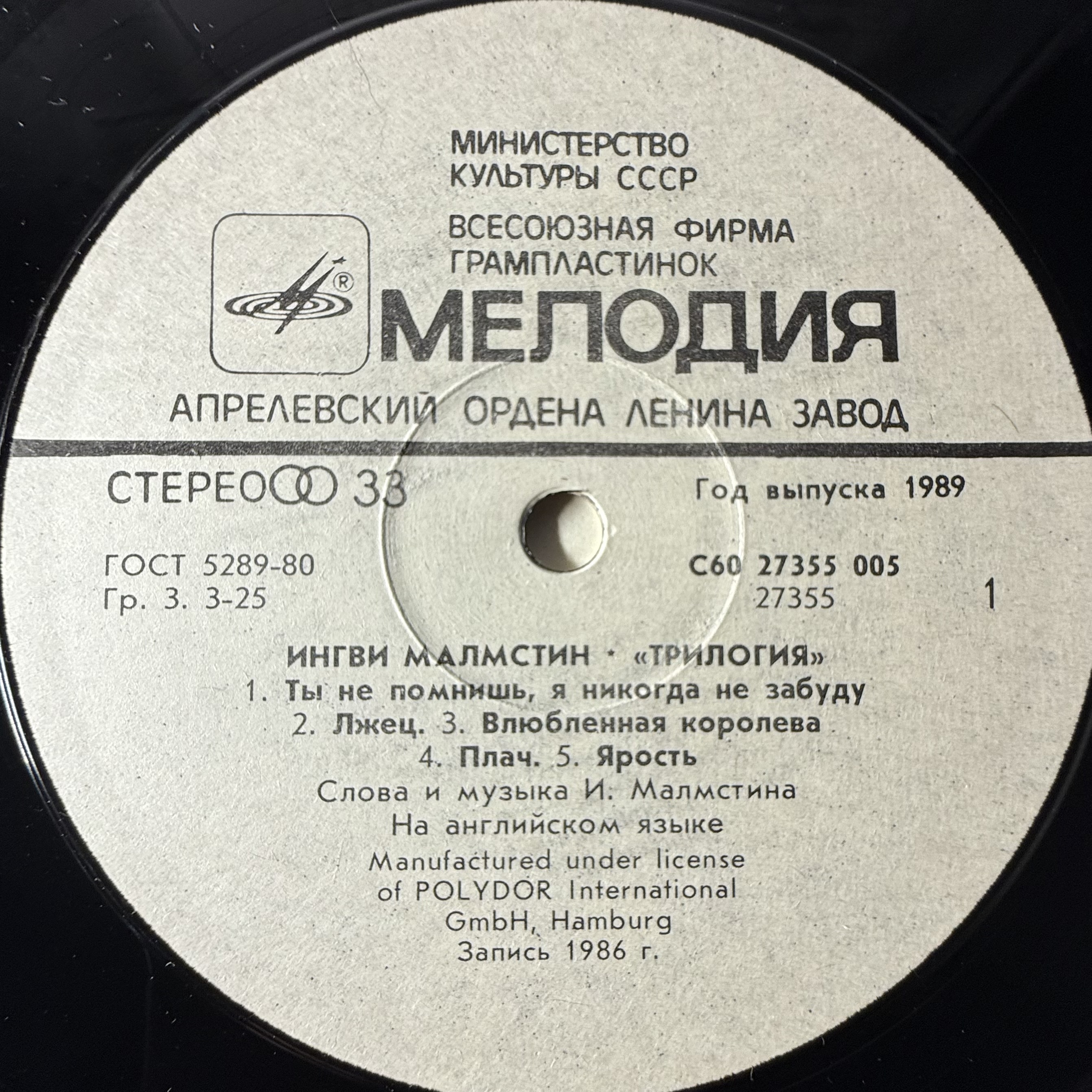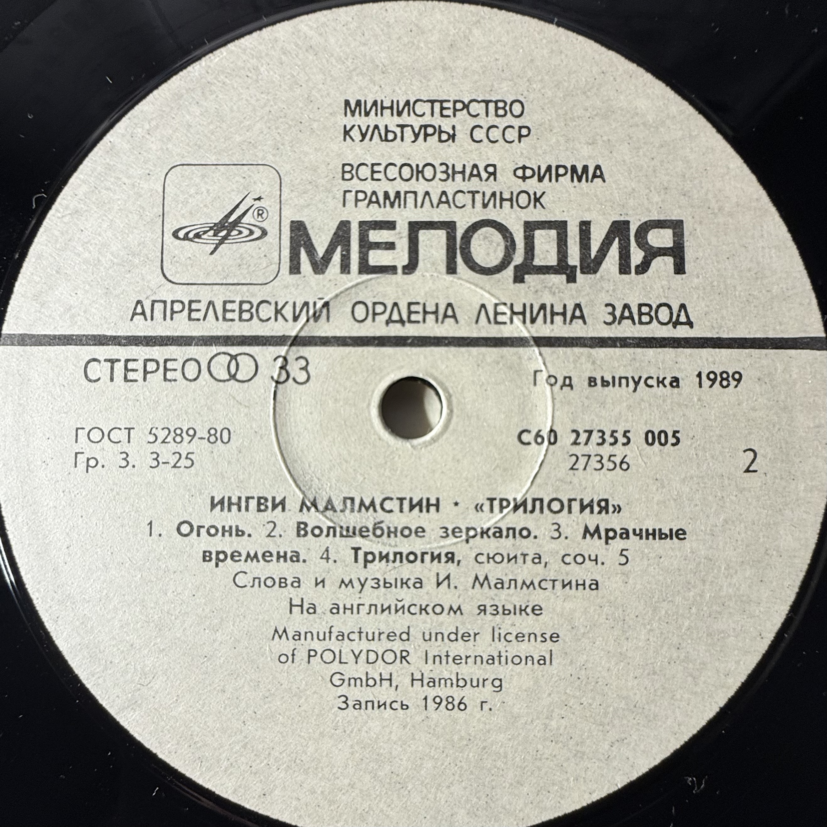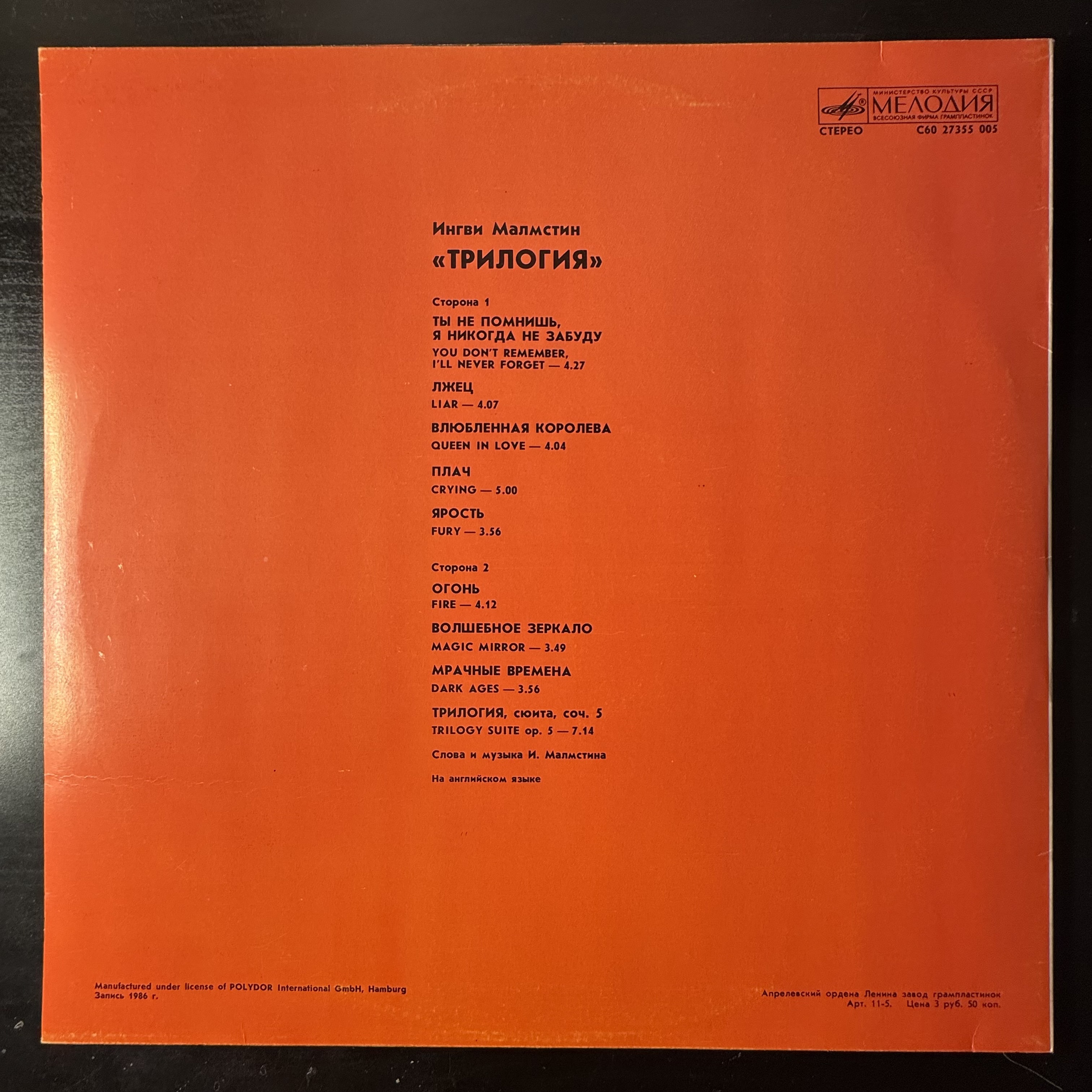 Виниловая пластинка Ингви Малмстин - Трилогия (Мелодия) LP