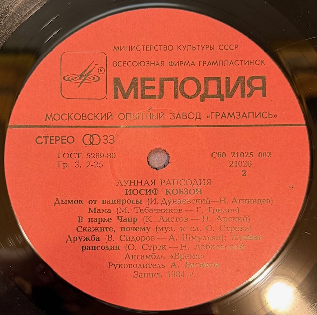 Виниловая пластинка Иосиф Кобзон – Лунная рапсодия (Мелодия) LP