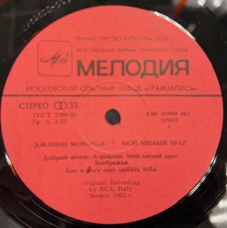 Виниловая пластинка Джанни Моранди - Мой Милый Враг (Мелодия) LP
