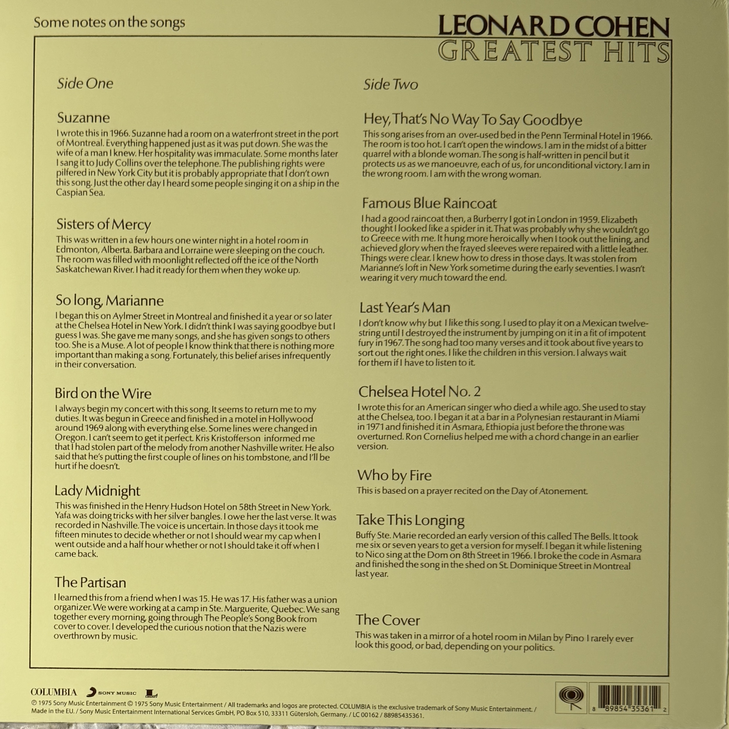 Виниловая пластинка Leonard Cohen - Greatest Hits LP