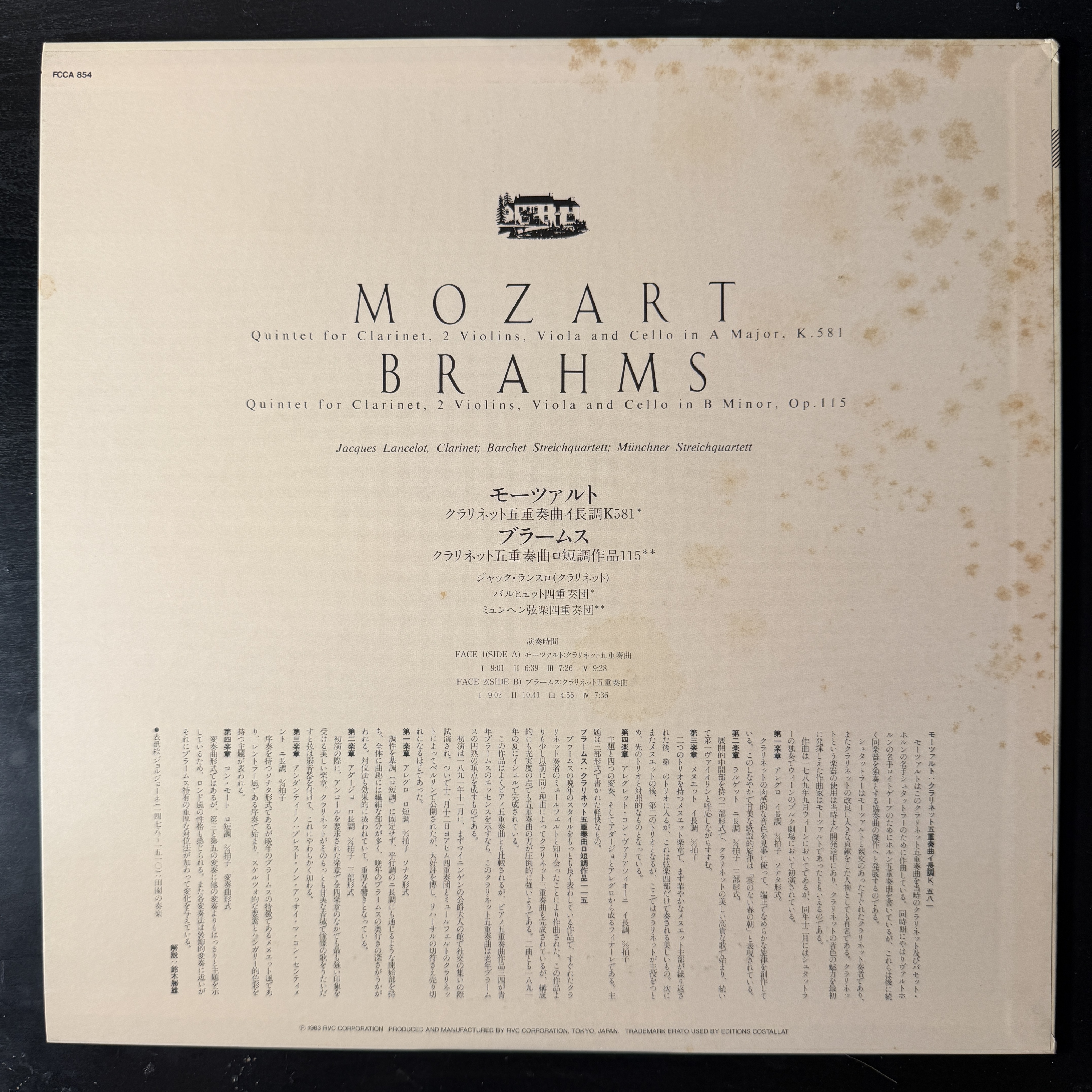 Виниловая пластинка Моцарт - Квинтеты для Кларнета К. 581, Брамс - Квинтеты для Кларнета соч.115 LP