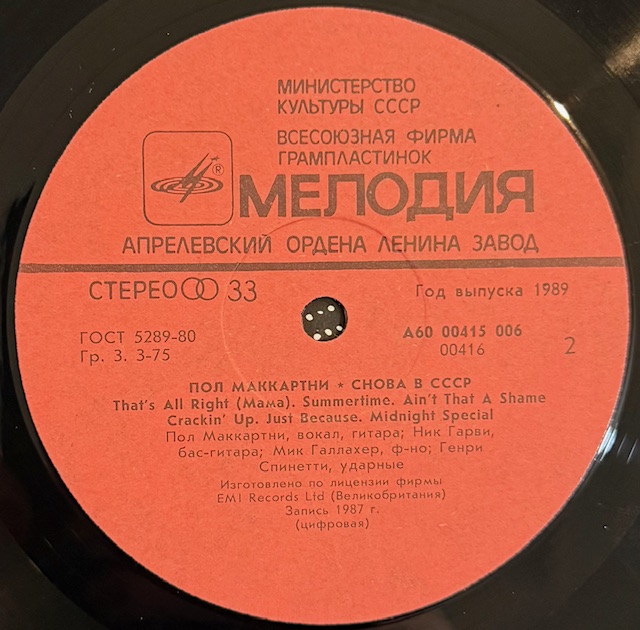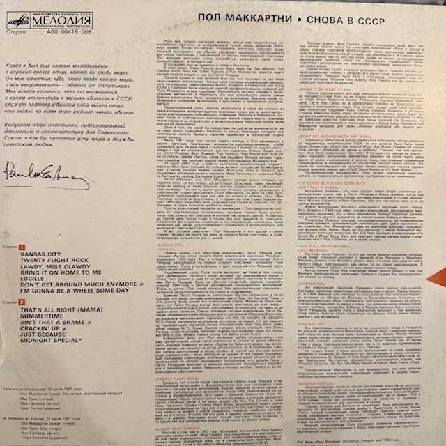 Виниловая пластинка Пол Маккартни – Снова в СССР (Мелодия) LP