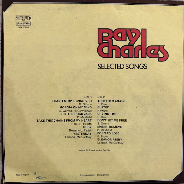 Виниловая пластинка Рэй Чарльз – Избранные песни (Балкантон) LP