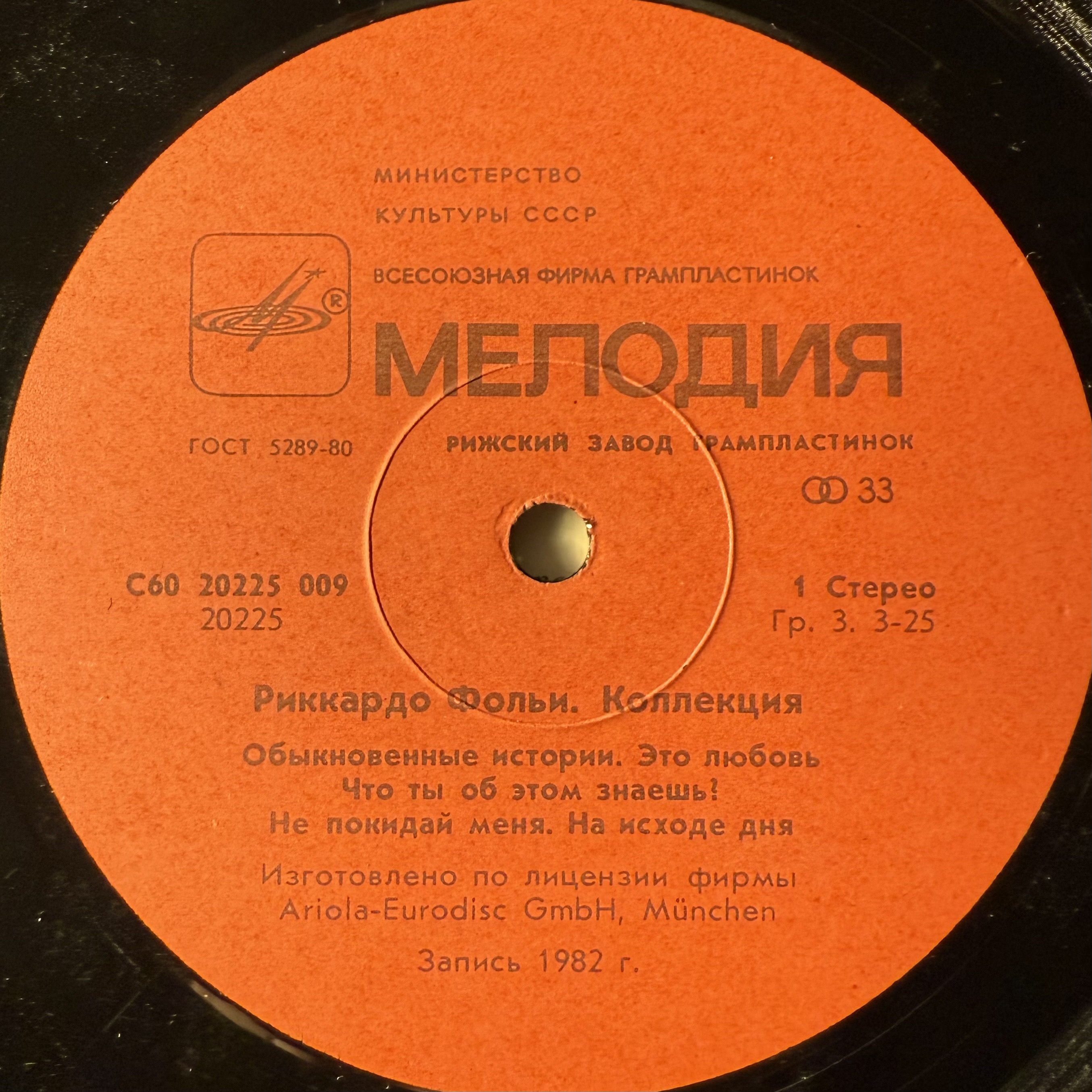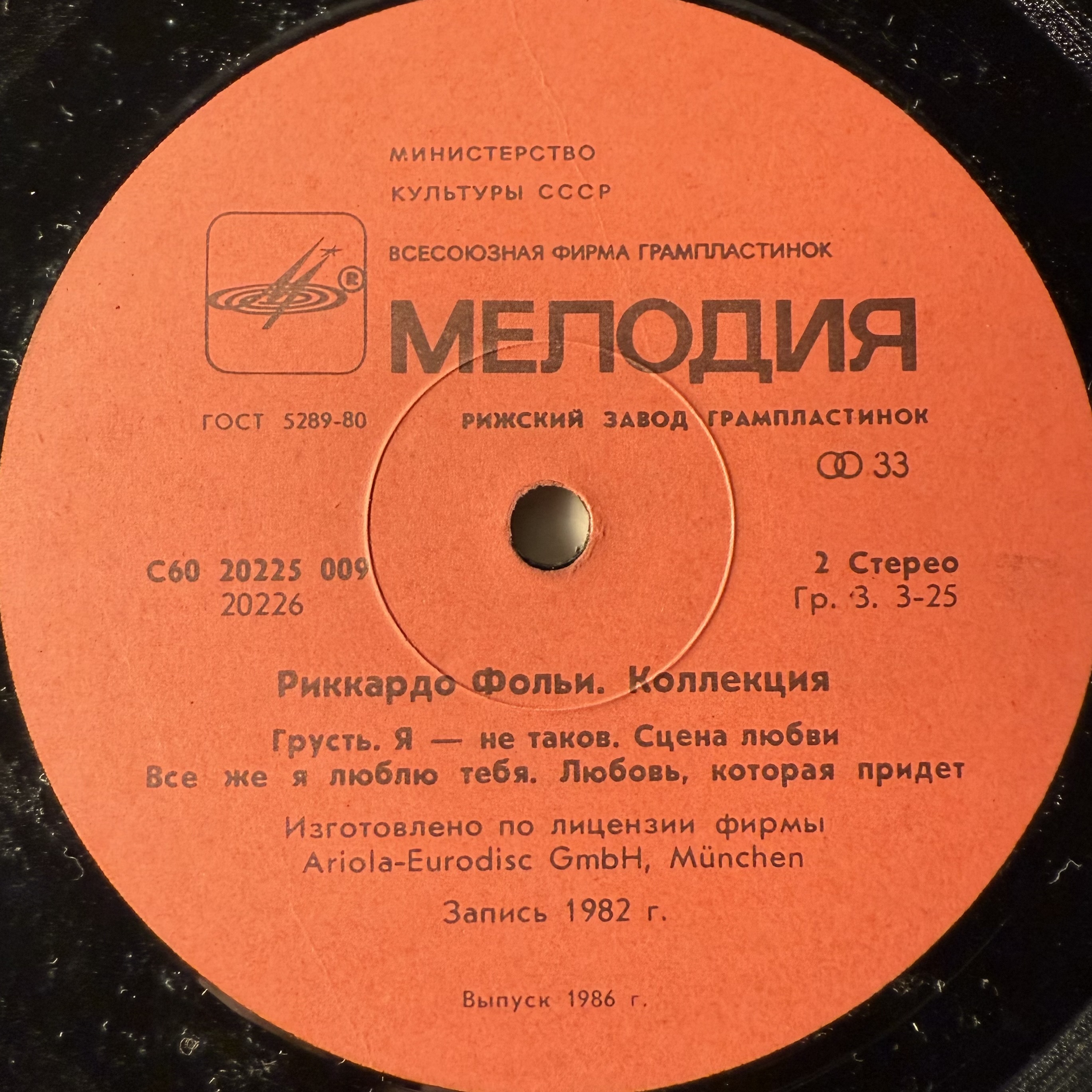 Виниловая пластинка Риккардо Фольи - Коллекция (Мелодия) LP
