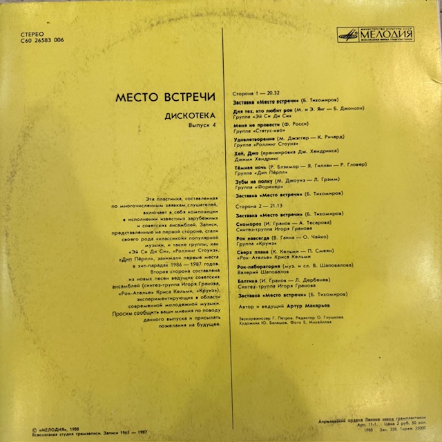 Виниловая пластинка Сборник – Место встречи «Дискотека». Выпуск 4 (Мелодия) LP