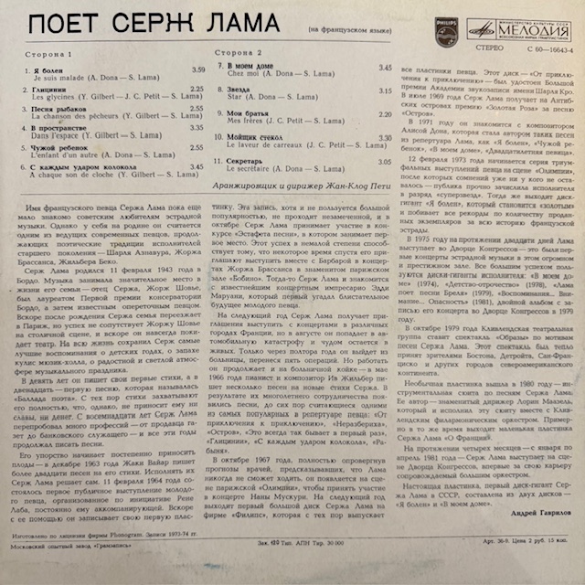 Виниловая пластинка Серж Лама — Поёт Серж Лама (Мелодия) LP