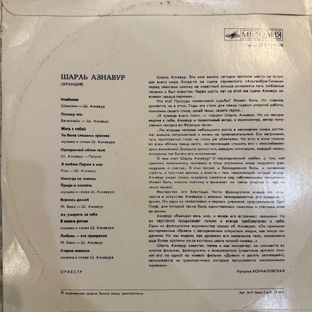 Виниловая пластинка Шарль Азнавур – Шарль Азнавур (Мелодия) LP