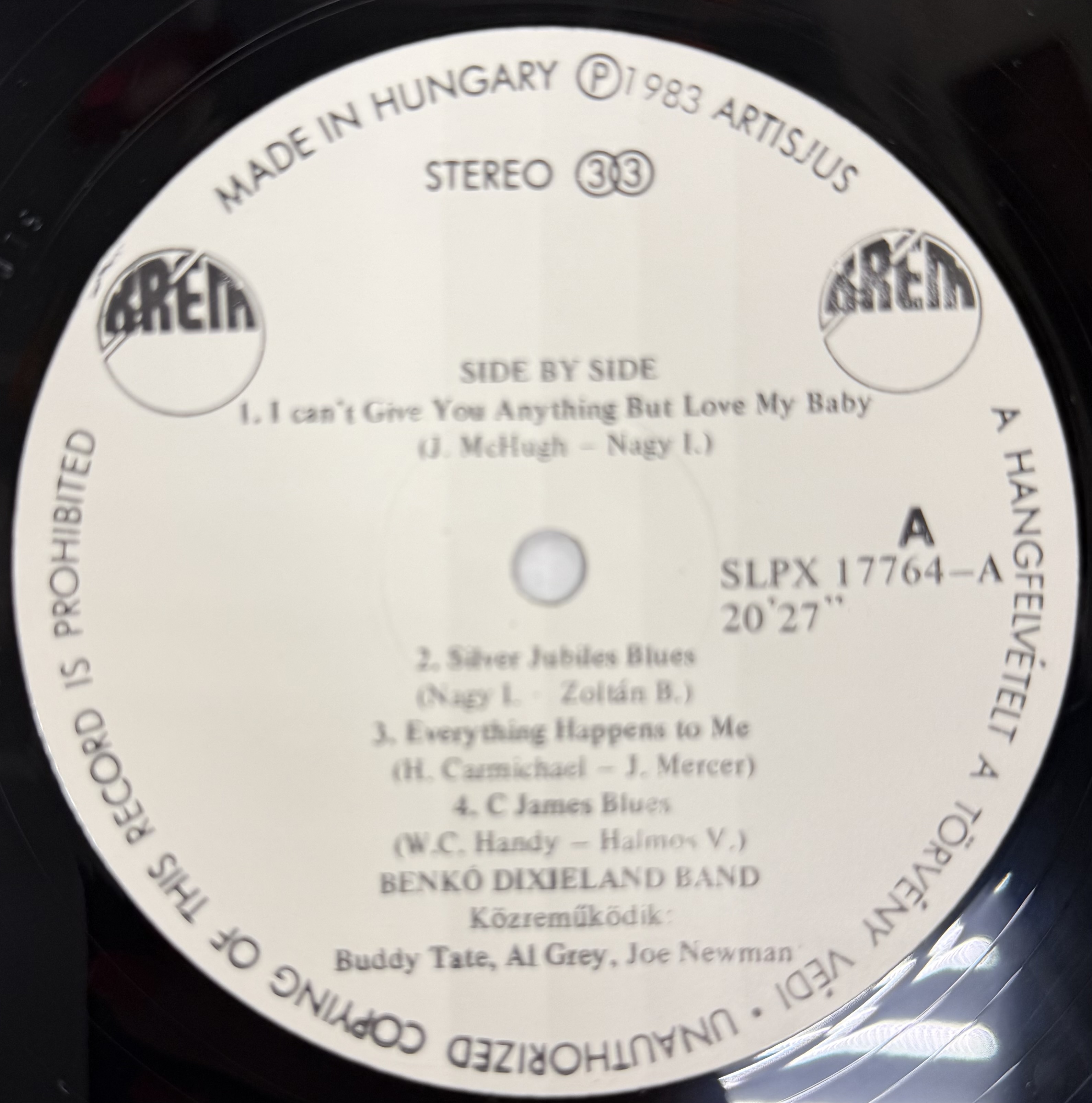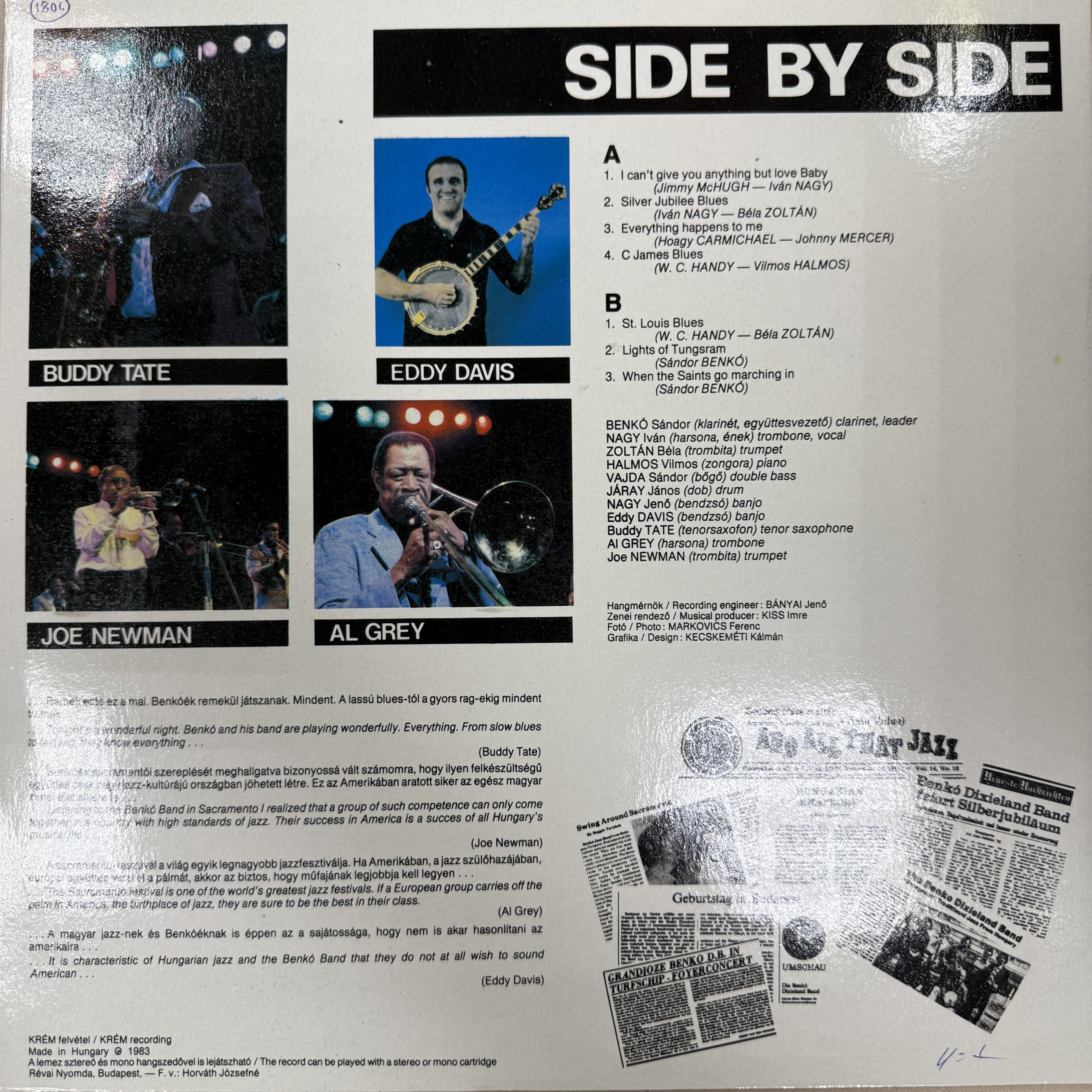 Виниловая пластинка Side By Side - Benkó Dixieland Band Featuring Al Grey LP