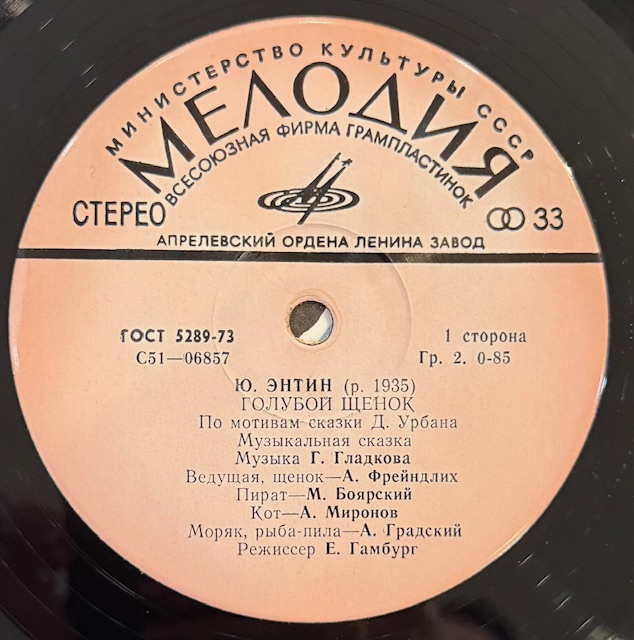 Виниловая пластинка Сказка Голубой Щенок (Мелодия) 10"