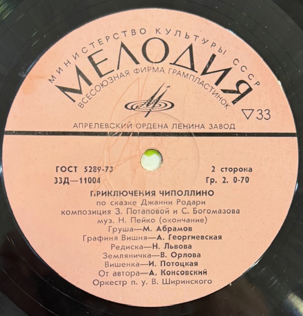 Виниловая пластинка Сказка Приключения Чиполлино (Мелодия) 10"