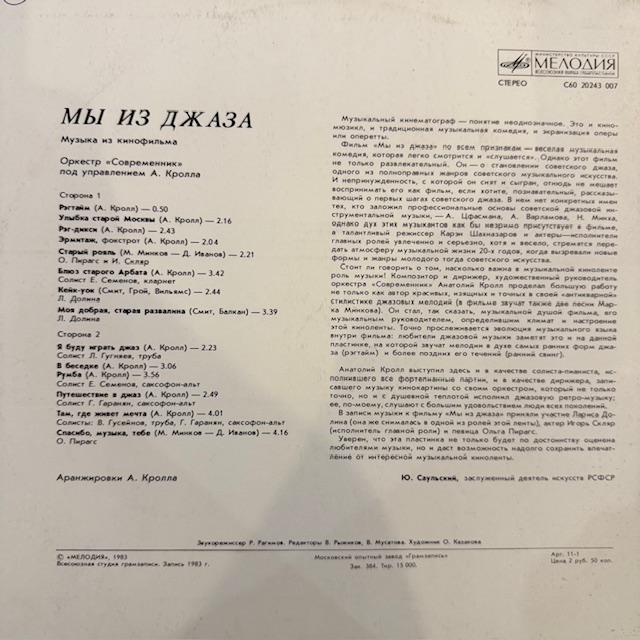 Виниловая пластинка Современник – Мы из джаза (Мелодия) LP