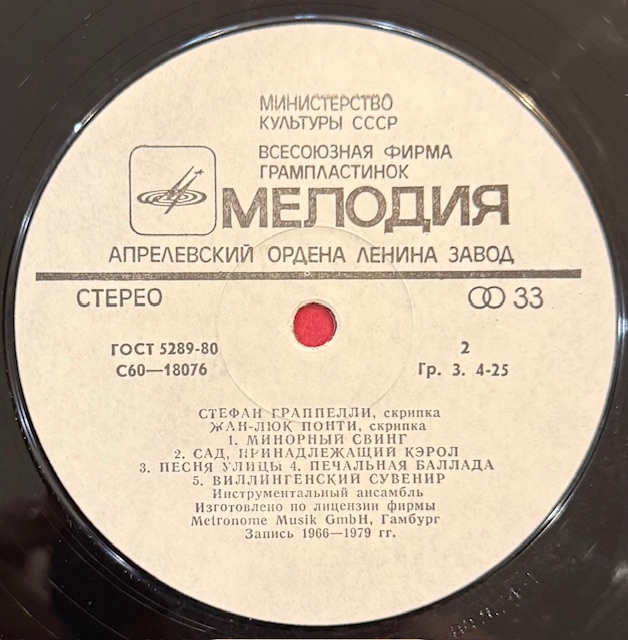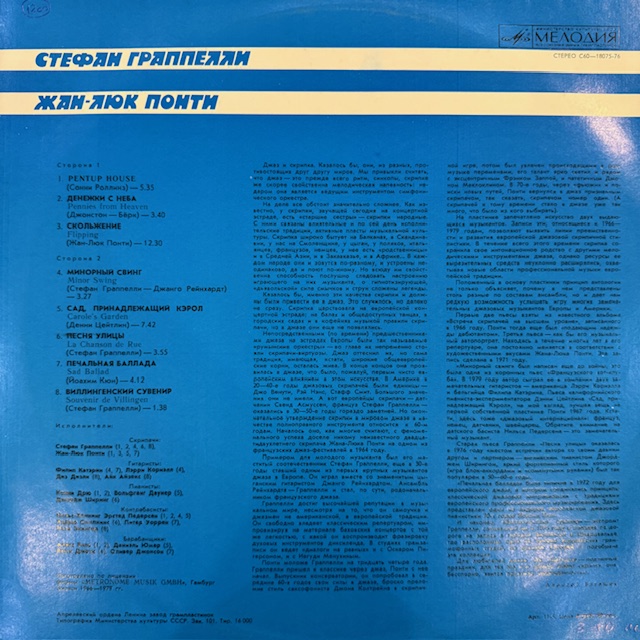 Виниловая пластинка Стефан Граппелли, Жан-Люк Понти (Мелодия) LP