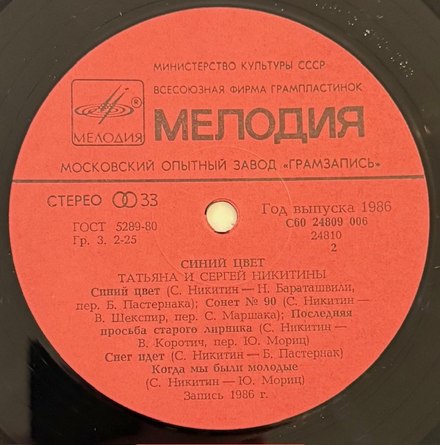 Виниловая пластинка Татьяна и Сергей Никитины – Синий цвет (Мелодия) LP