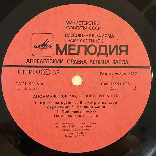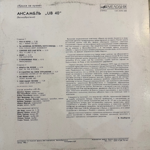Виниловая пластинка UB40 — Крыса на кухне (Мелодия) LP