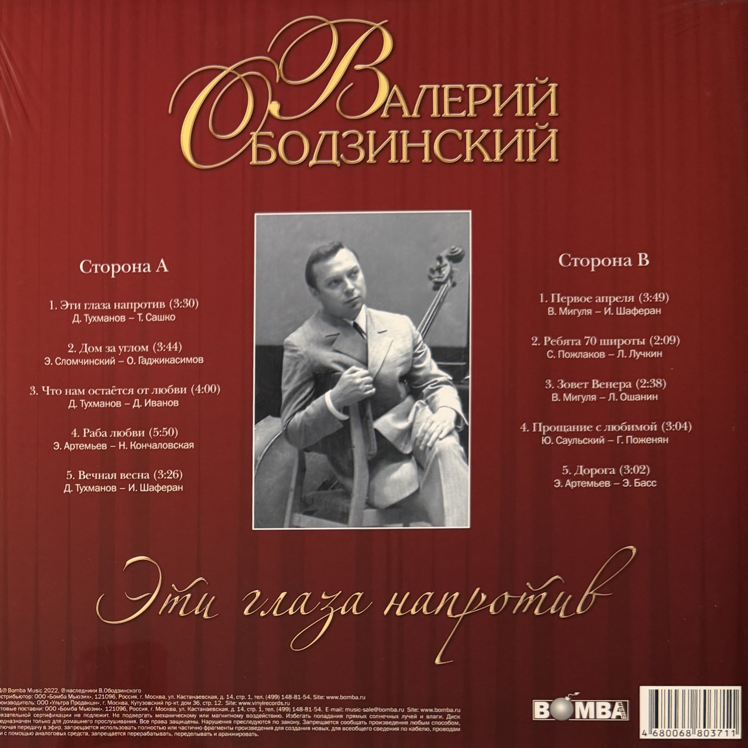 Виниловая пластинка Валерий Ободзинский - Эти Глаза Напротив LP