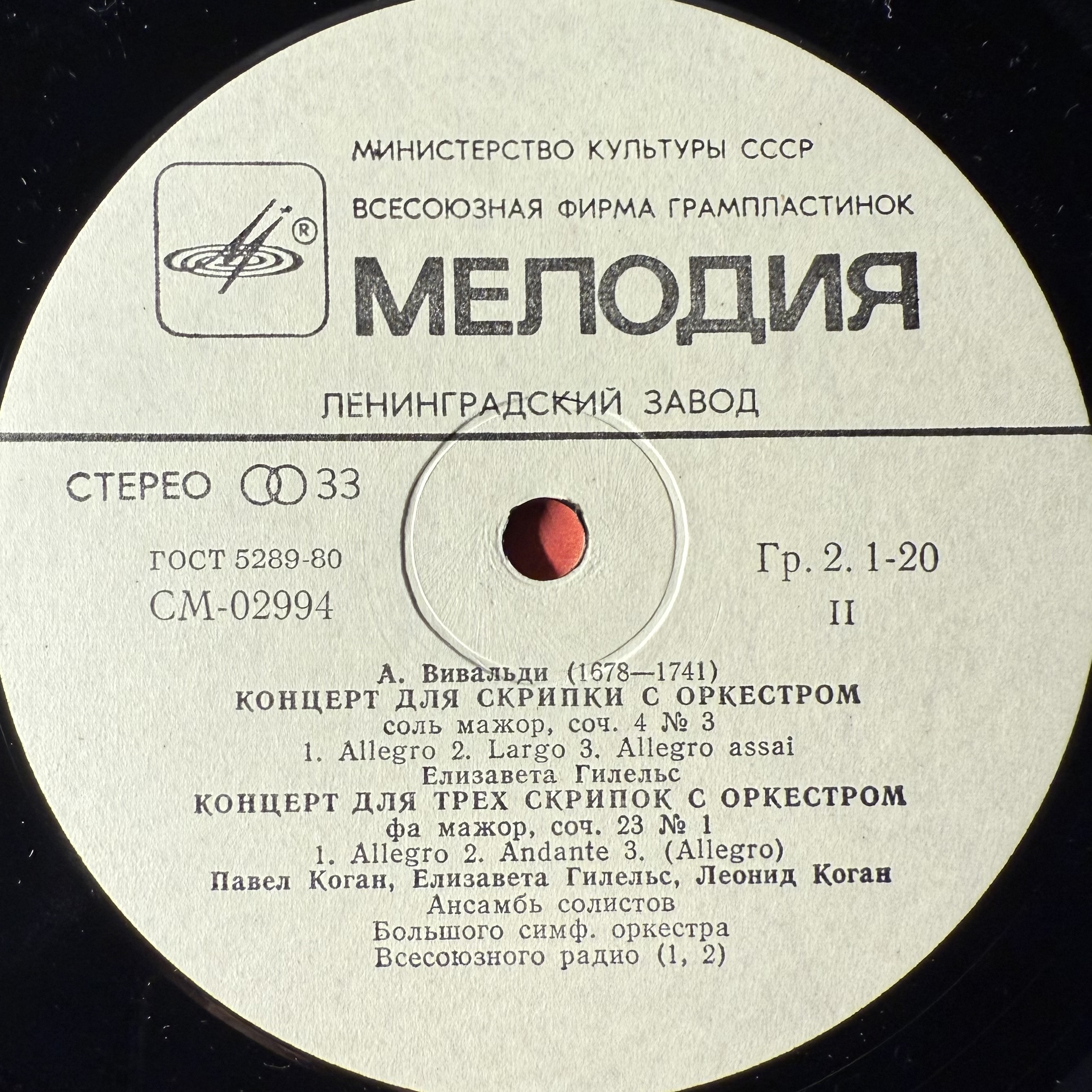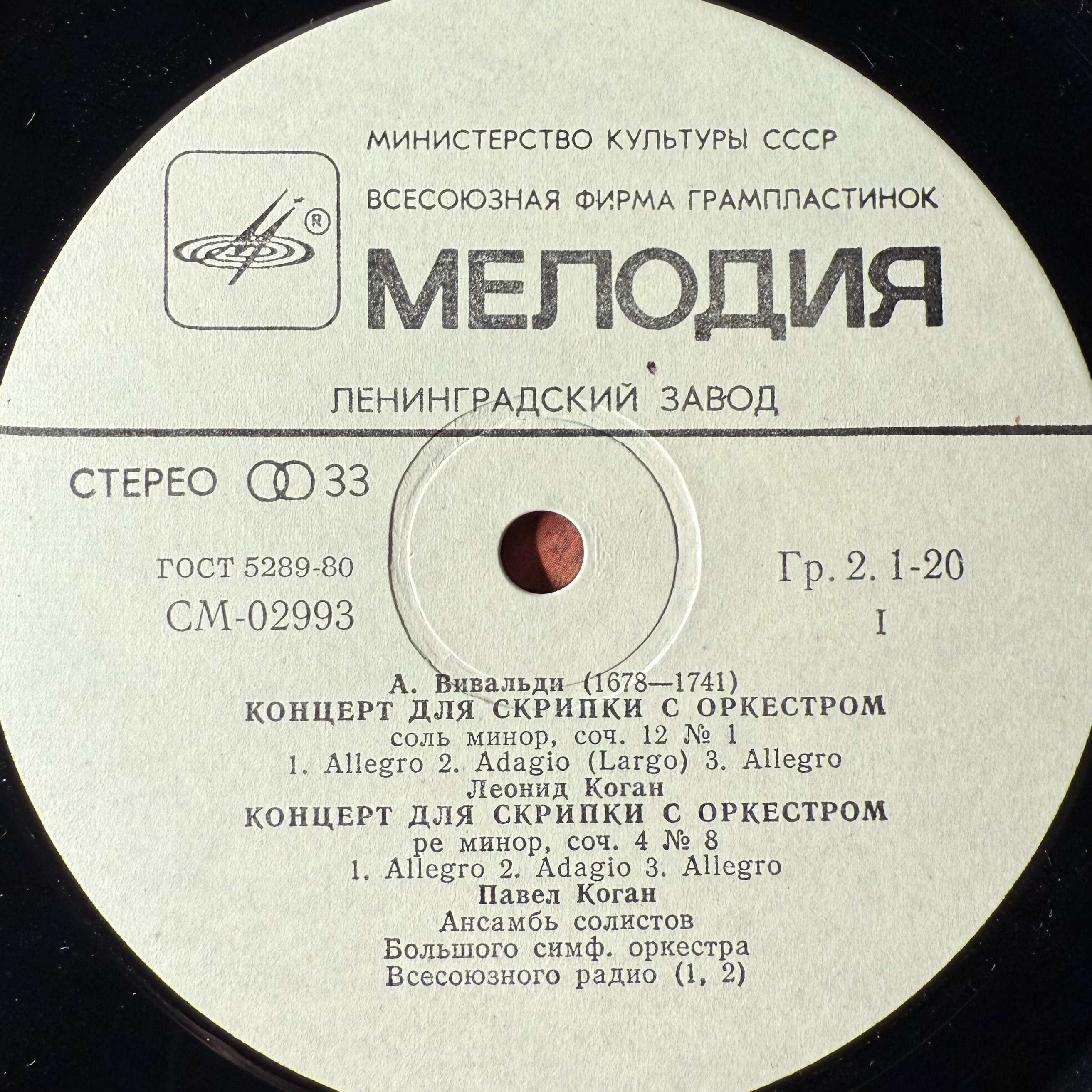 Виниловая пластинка Вивальди - Скрипичные Концерты (Мелодия) LP