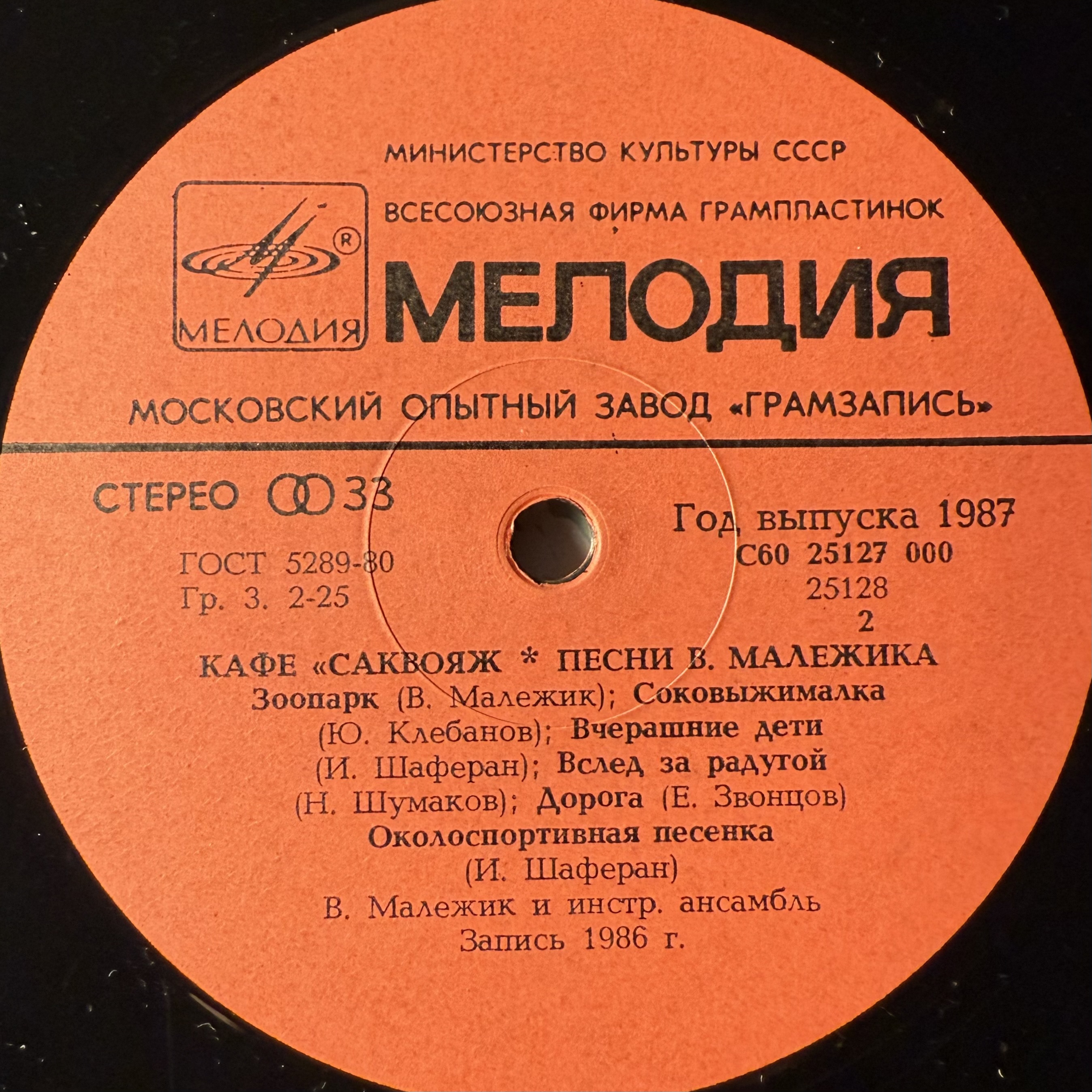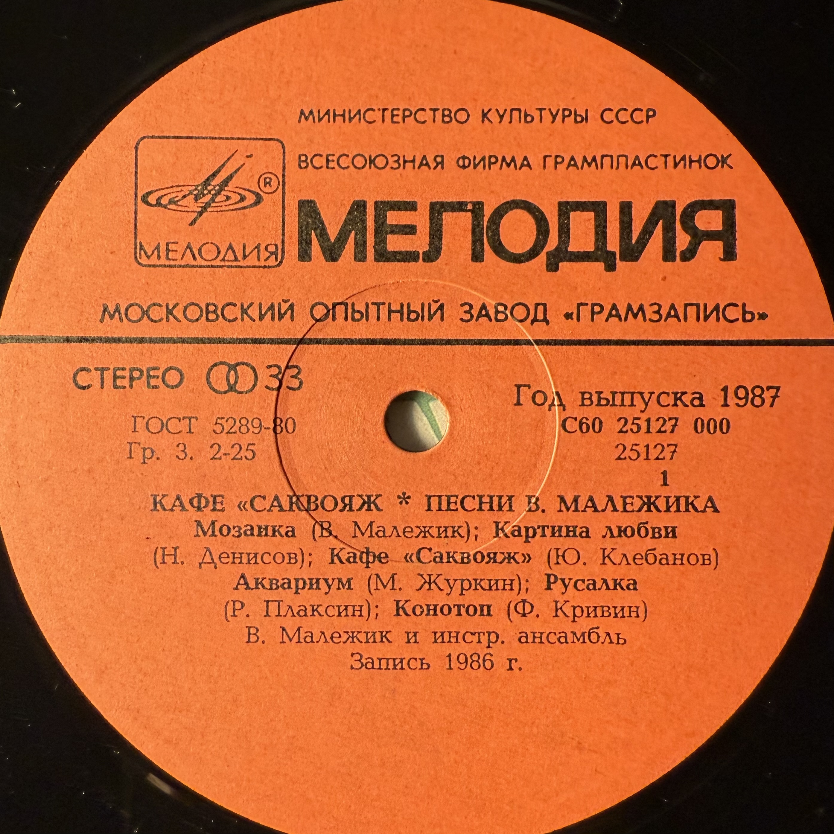 Виниловая пластинка Вячеслав Малежик ‎– Кафе "Саквояж" (Мелодия) LP