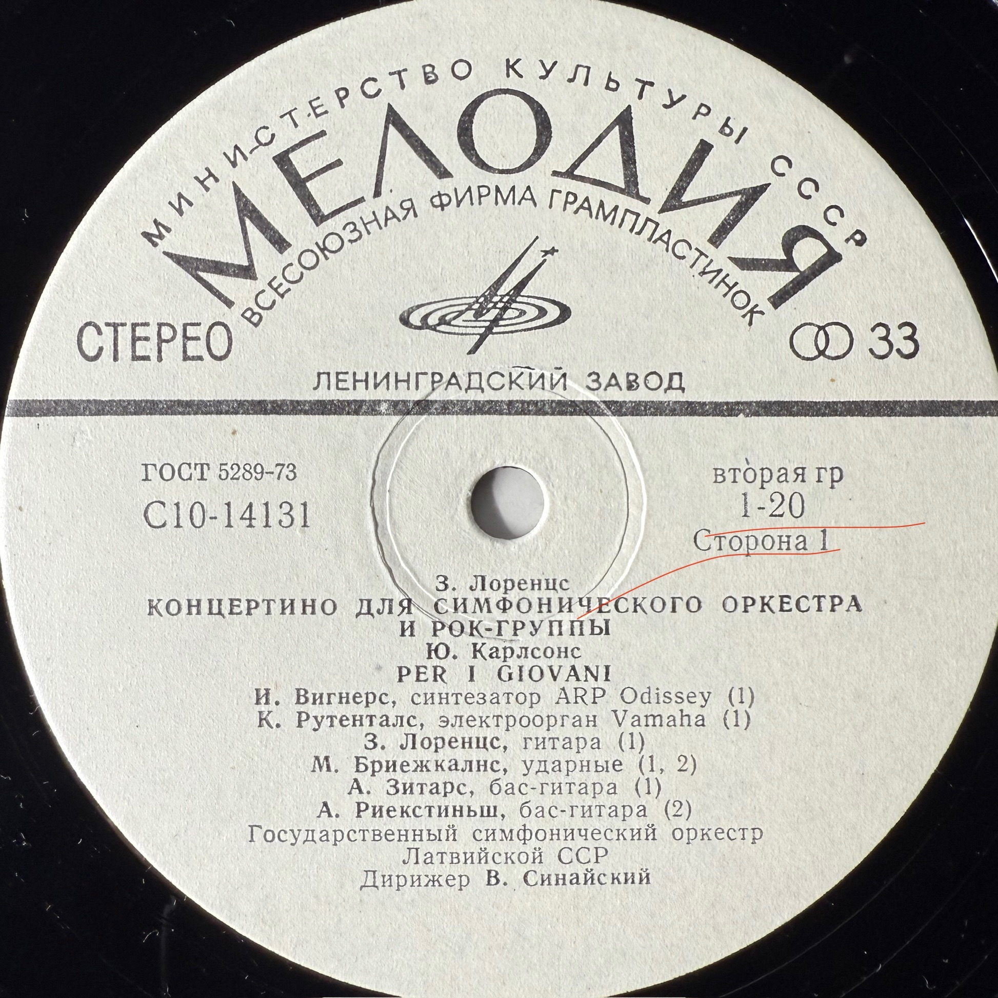 Виниловая пластинка З. Лоренцс, Ю. Карлсонс, П. Плакидис, П. Васкс LP